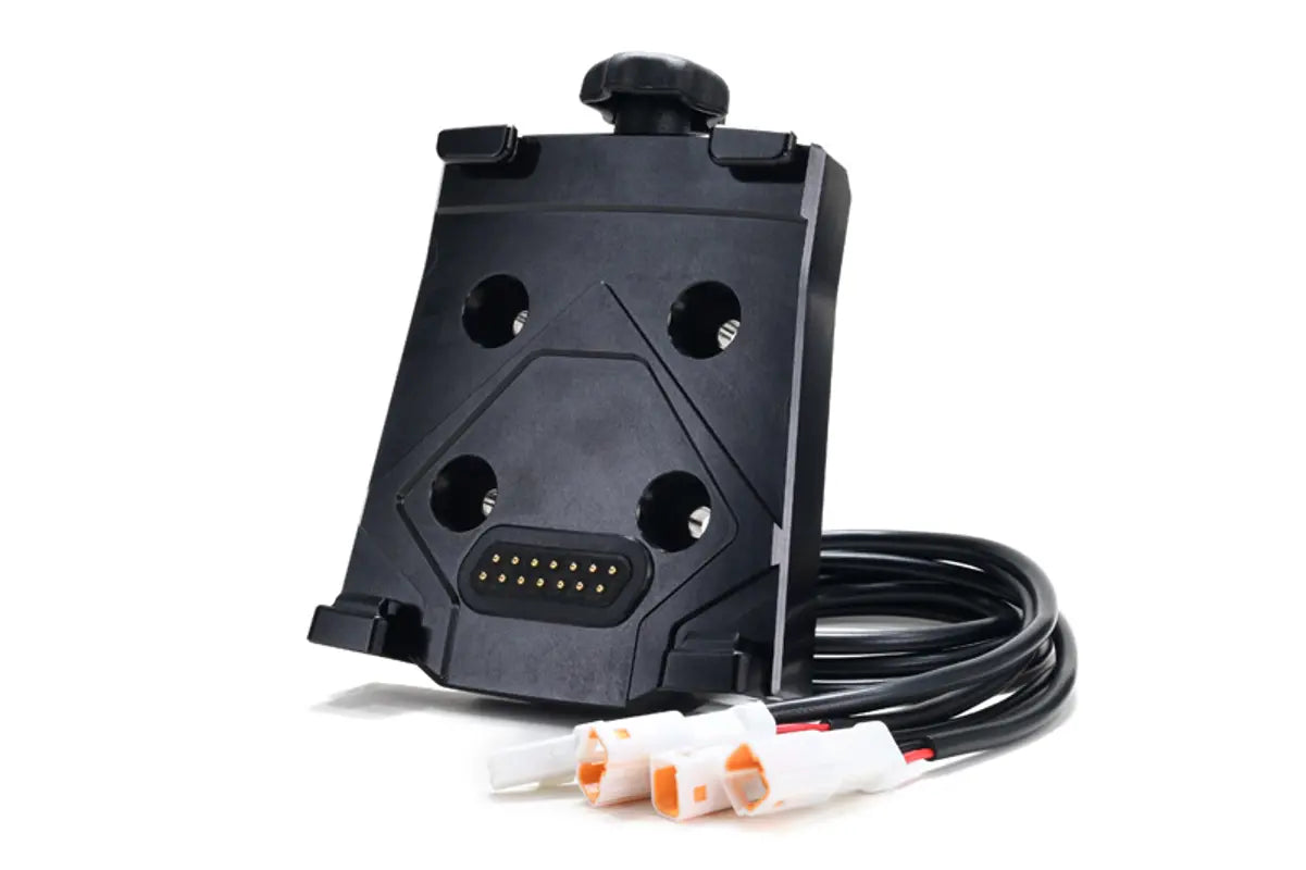 Engineered for durability. Upgrade the standard Voyager Pro dock with this premium aluminum replacement. The EXTREME ALUMINUM DOCK is machined from billet aluminum, with additional enhancements for water diversion, positive thumbscrew lock and mechanically improved pins. Hard mount with quick removal of the Voyager Pro GPS.